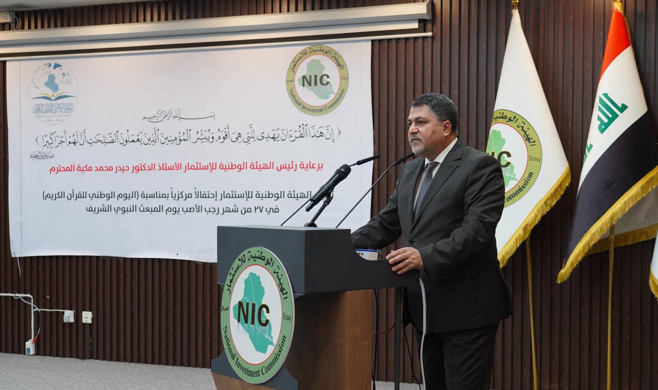 نظمت الهيئة الوطنية للإستثمار اليوم الثلاثاء 28/1/2025 حفلاً مركزياً لمناسبة ( اليوم الوطني للقرآن الكريم ) الذي يتزامن مع المبعث النبوي الشريف في 27 من شهر رجب الأصب برعاية وحضور رئيس الهيئة الأستاذ الدكتور حيدر محمد مكية .