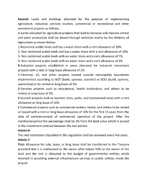 2- Non reclaimed arable lands and has a water share with a rent allowance of 10%.